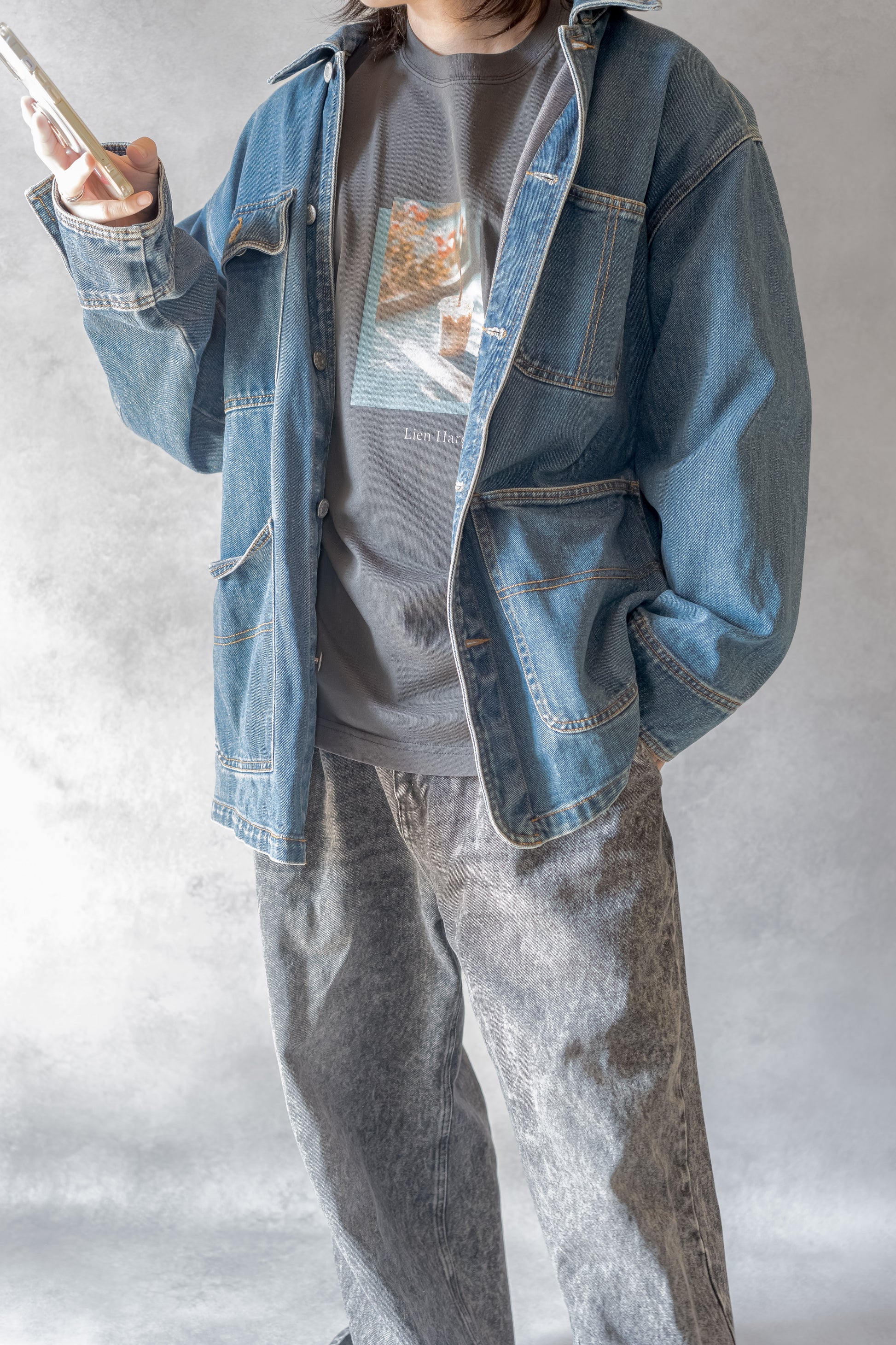 そしてこの一枚はピグメント染め。洗うたびに少しずつ色がほどけ、ステッチや袖口に自然な“アタリ”が生まれ、